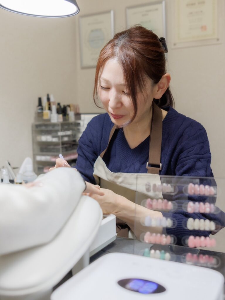 指先にコンプレックスがある方に自信を持って手を出して頂けるようお手伝いがしたい。指先はいつも自分の目に付くところなので美意識と自己肯定感が高まり気分が上がります。まだネイルをした事がない方にも是非経験して頂きたいです。